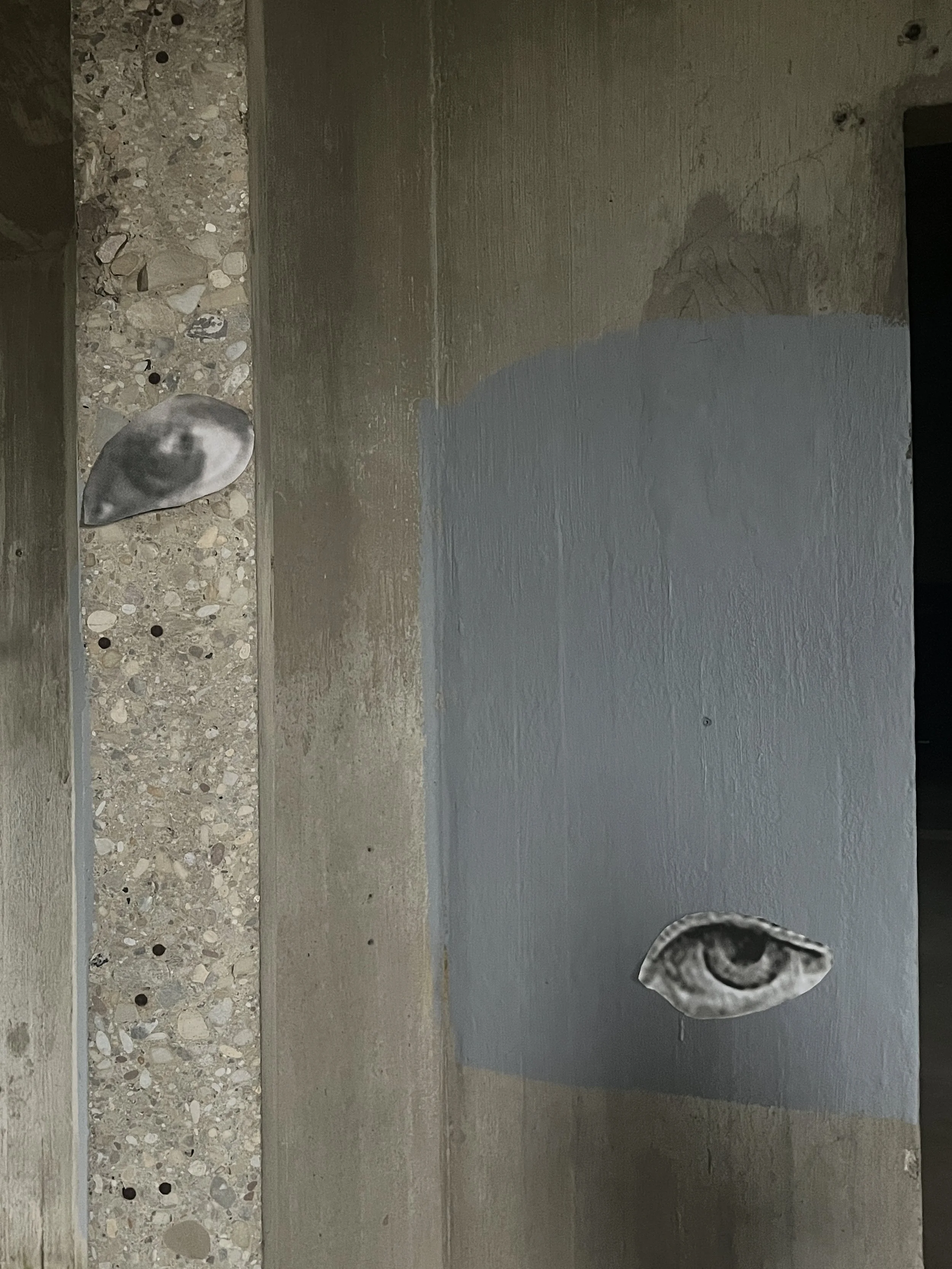 Installed inside the awe-inspiring architecture of Buffalo’s Silo City as part of a poetry reading series hosted by Just Buffalo Literary Center, this piece responds to Roger Reeves’s poetry collection Best Barbarian. A constellation of cut-out eyes were installed around the site cataloguing every person and creature that was referenced in the book, creating the opportunity for all the life in Reeve’s work to look back at us.